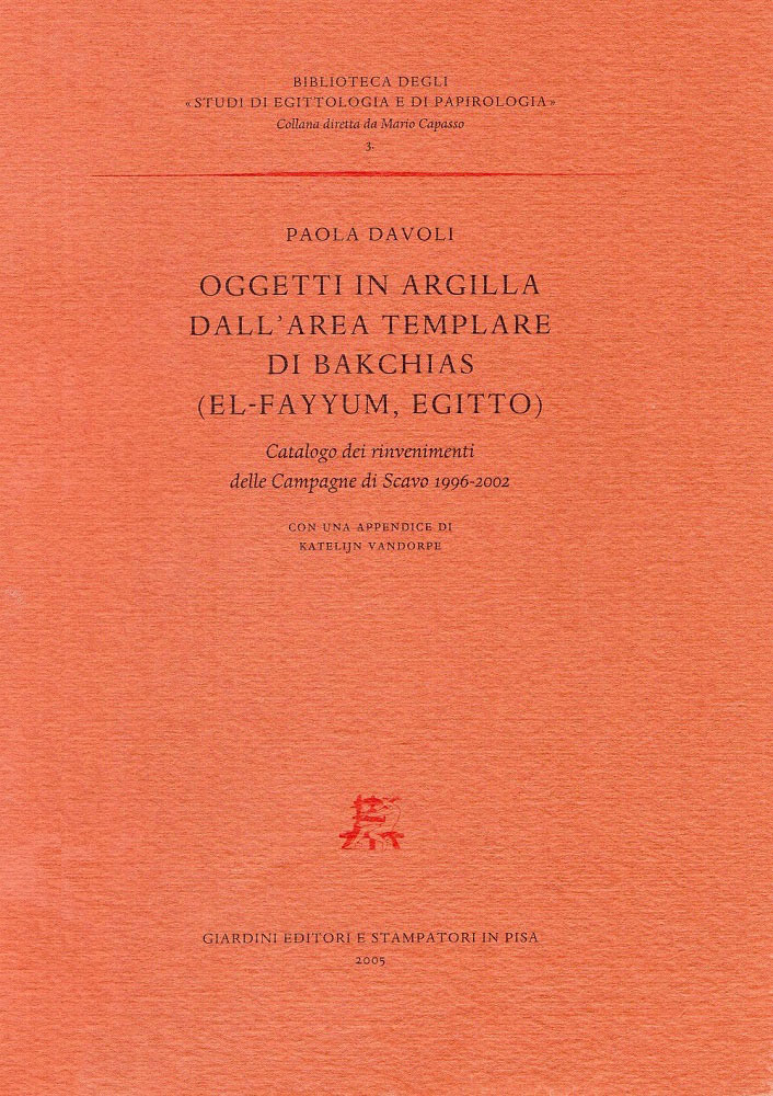 Oggetti in argilla dall’area templare di Bakchias (el-Fayyum, Egitto). Catalogo dei rinvenimenti delle Campagne di Scavo 1996-2002. Con una appendice di K. Vandorpe (Biblioteca degli «Studi di Egittologia e di Papirologia», 3), Pisa-Roma, Giardini Editori e Stampatori in Pisa, 2005. ISBN: 88-427-1446-1.