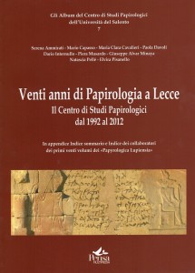 Venti anni di papirologia a Lecce. Il Centro di Studi Papirologici dal 1992 al 2012. In appendice Indice sommario e Indice dei collaboratori dei primi venti volumi dei «Papyrologica Lupiensia» (Gli Album del Centro di Studi Papirologici dell’Università degli Studi di Lecce, 7), Lecce, Pensa Multimedia, 2012. ISBN: 978-88-6760-051-9.